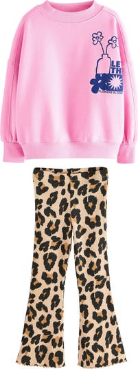 Your budding trendsetter will love heading to school in the comfort and style of this cozy sweatshirt and flare leggings set.