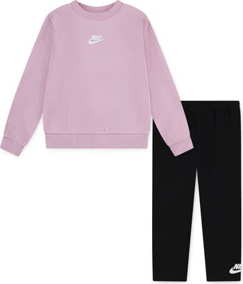 Made from cotton-forward fabric, this two-piece set, featuring a crewneck sweatshirt and comfy leggings, is definitely playdate approved.