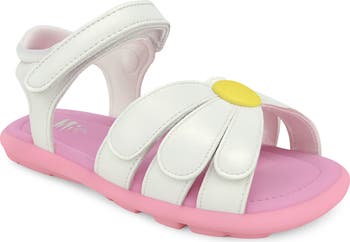 Give your kid fun style with this flower-powered sandal secured by adjustable hook-and-loop straps and grounded by a grippy rubber sole.
