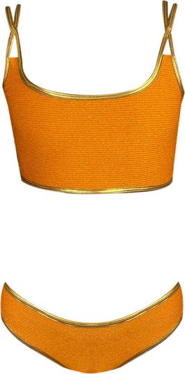 Crafted from high-quality Italian stretchy fabric, this bikini is designed to provide a comfortable and perfect fit for your girl. The gold piping detail adds a trendy touch, while a playful and luxury look.