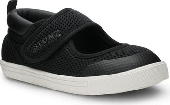 A silhouette inspired by the classic mary jane softens the sporty mesh design of this sneaker-flat hybrid perfect for taking on playgrounds and parks.