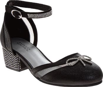 It will be your kid's time to shine in this shimmery pump set on a crystal-embellished block heel and topped with a sparkly bow.