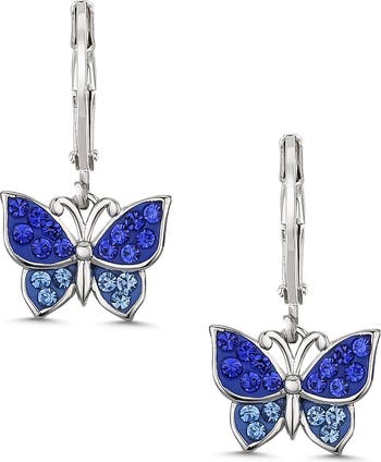 Sparkling crystals illuminate these whimsical butterfly drop earrings designed just for kids.