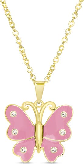 Bring bright color and definite sparkle to their look with this golden necklace anchored with a pendant shaped like a beautiful butterfly.