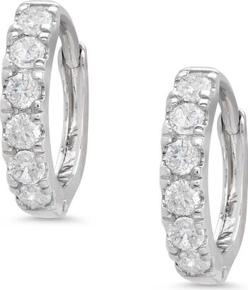 Pavé cubic zirconia line these petite hoop earrings your little one is sure to take a shine to.