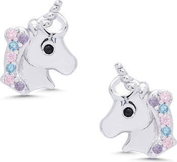 Let them slide down rainbows and skip on clouds in these whimsical unicorn studs accented with twinkling sparkle.