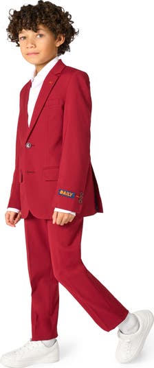 Bright-red coloring gives your child a truly standout look at any occasion in a crisp, smart suit that's crafted with plenty of stretch for all-day comfort. It comes with flat-front trousers and a matching tie to keep everything coordinated. When the party's over, everything washes easily in your machine so it's always ready for the next event.