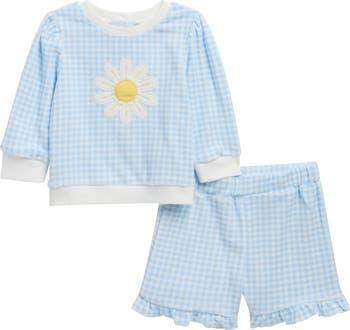 It's a definite 'loves me' situation when you outfit your little one in a set that features a flower-powered top and ruffle hemmed shorts.