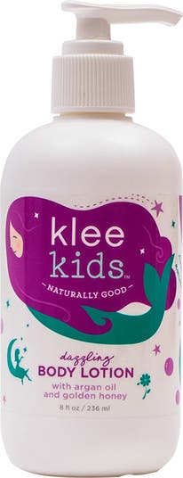 Keep dry skin away with Klee Kids' Dazzling Body Lotion. The healing powers of organic honey soothe dryness and mild irritation, while mango butter and argan oil keep skin moisturized all day. Scented with lavender, orange peel and lemongrass essential oils.