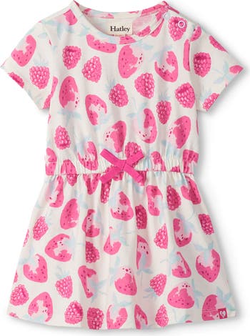A stretchy waist cinches this pint-sized dress that's all cotton and sweetened with a print of assorted berries.