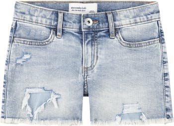 Dashed with destruction and washed to a sunbaked fade, these stretch-denim cutoffs are ready to play a starring role in your kid's warm-weather wardrobe.