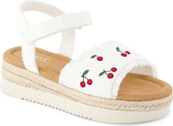 Frayed trims and embroidered cherries bring kid-approved charm to an espadrille sandal fitted with a cushioned CloudBound insole so your budding trendsetter is ready to take on any adventure.