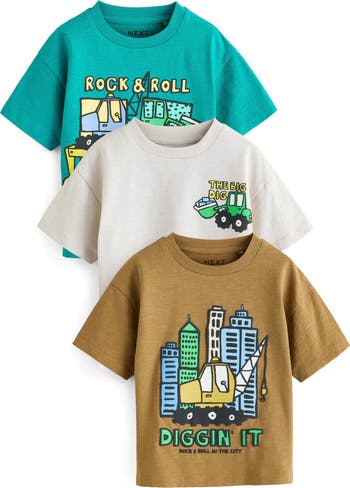 Your active little one will stay comfortable while working on heavy-duty construction projects wearing this set of soft cotton T-shirts featuring a fun mix of graphics.