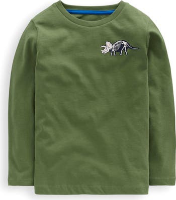 This long-sleeve cotton T-shirt features a graphic of dinosaurs flee spewing lava that's sure to spur paleontology conversations.