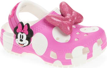 Minnie Mouse joins your kiddo on their everyday adventures in this classic clog made with signature 360° comfort. Porthole detailing on the bacteria- and odor-resistant upper creates ventilation and flow-through, while nonmarking, skid-resistant soles provide superior traction.