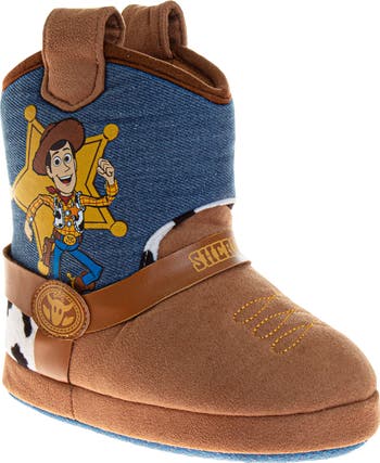 Your junior sheriff will be lounging and walking around the house like they own the place in the comfort of this plush slipper done in a Western-inspired silhouette.