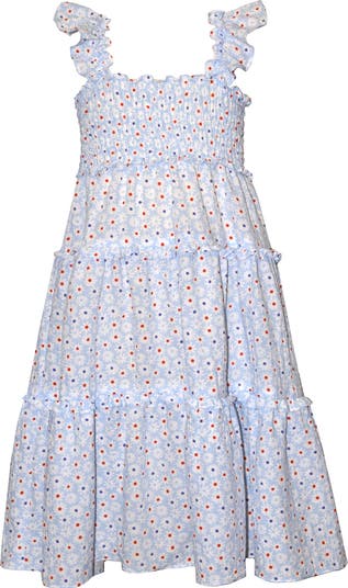 Made for sunny celebrations, this ditsy-floral dress features a comfortably smocked empire waist and a tiered ruffle-trim skirt your little one can twirl the day away in.