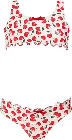 Scalloped edges and a sweet print will have your kiddo feeling like they're on vacation in this two-piece swimsuit.
