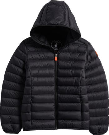 Kid explorers will be ready to brave chilly adventures in the insulated warmth of this channel-quilted puffer jacket boasting a shower-shielding hood and lightweight feel.