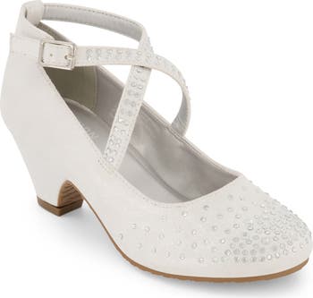 A galaxy of rhinestones adds dazzle to this strappy round-toe pump.