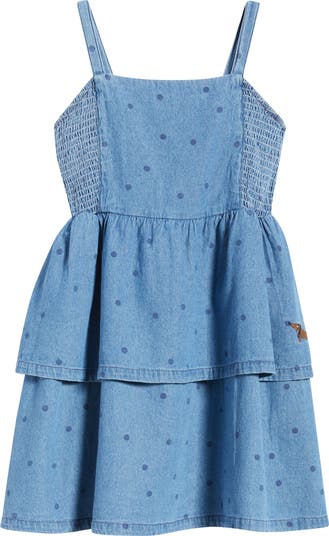Delightful dots and rows of ruffles define a denim dress made from pure organic cotton for a look your kiddo will adore.