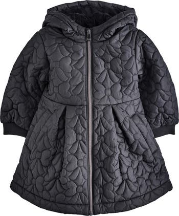 A cozy eared hood and skirted hem help your little explorer stay warm in this quilted jacket finished with welt pockets to keep hands toasty.