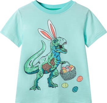 A fierce T-Rex shows off his soft side on this Easter-ready graphic T-shirt your little one will love.