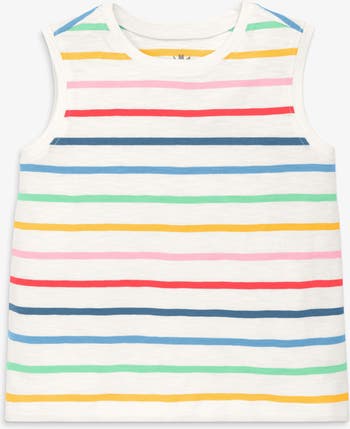 The Kids easy tank is easiest route to getting dressed for bare-shoulder, balmy days, with a dose of mood-boosting rainbow stripes. Made from 100% cotton slub it is pre-washed to minimize shrinkage. This tank is soft with a light and laidback texture in a relaxed fit. Available in sizes 2-14.