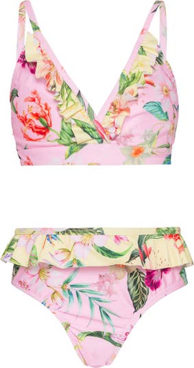 Scalloped edges bring playful energy to this two-piece swimsuit that'll keep them splashing happily all day long.
