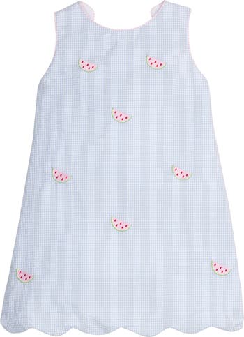 - Our Embroidered Bow Back Dress is a classic style featuring all-over embroidery, a scalloped hem, and fixed bow on the back.