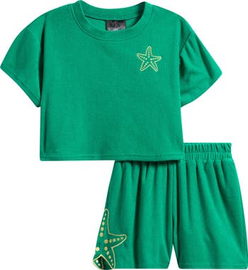 They'll love the embroidered starfish details that bring coastal charm to this supersoft cotton-blend cover-up set featuring a boxy top and matching shorts made of absorbent terry.