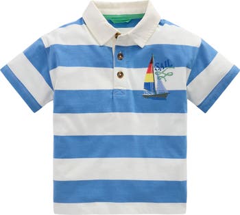 Nautical stripes decorate this pint-sized polo cut from soft, breathable cotton and punctuated with a charming embroidered sailboat at the chest.