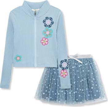 Kids' Embroidered Flower Top & Polka Dot Tulle Skirt Set