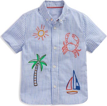 A neat button-down collar will keep your little one looking polished all day long in this short-sleeve shirt cut from soft, breathable cotton.