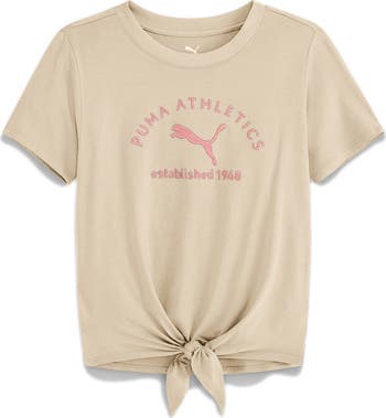 Sweet and sporty, this short-sleeve T-shirt features logo embroidery, a tie hem and lightweight stretch cotton perfect for school, the weekend and beyond.