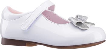 A glitter-dusted bow adds an extra dose of charm to a photo-ready flat secured by an adjustable mary jane strap. A foam-cushioned footbed and slip-resistant sole deliver comfort and stability.
