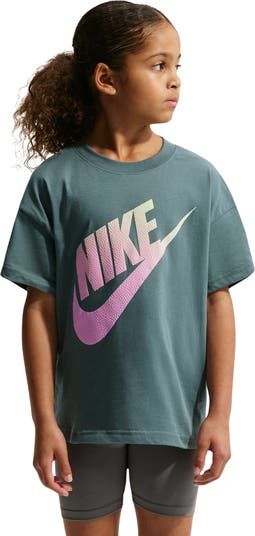 A bold logo and loose fit bring kid-approved style to this sporty T-shirt cut from lightweight cotton.