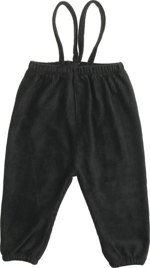 Soft cotton-blend corduroy brings touchablle texture to these playful overalls that pair well with your little one's cold-weather looks.