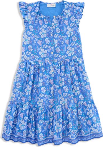 Buttons dance down the front of this easygoing cotton-blend dress with fluttering sleeves.