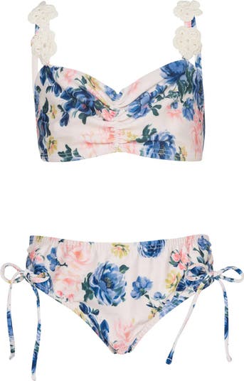 Crochet-embellished straps bring playful energy to this two-piece swimsuit that'll keep them splashing happily all day long.