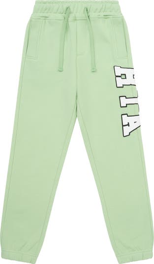 Collegiate-style letter appliqués bring big varsity style to these cozy cotton sweatpants made just for kids.