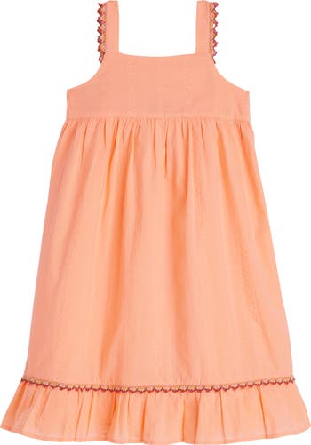 Subtle eyelet designs and floral embroidery detail this swingy dress made from breathable cotton.