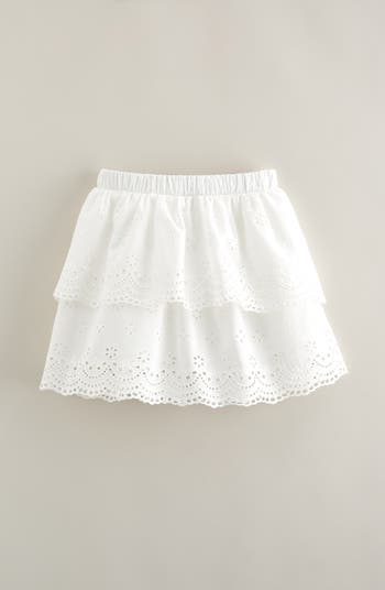 Eyelet embroidery lends an angelic look to this tiered, elastic-waist skort that's perfectly sweet for school or the weekend.