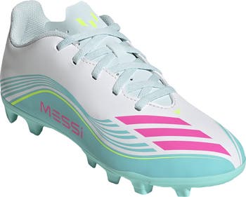 A streamlined upper provides a clean strike zone on this kid-size soccer cleat designed in collaboration with Messi for sure-footed performance and explosive speed on firm and multiground surfaces alike. The perforated tongue and lightweight padding put distraction-free performance underfoot for your young player.