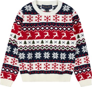Bands of bright colors and festive patterns ring a Nordic-inspired sweater that's sized for kids and made for comfort from soft, breathable cotton. It's easy to wear alone or layered depending on the temperature or the occasion, and it's machine-washable so you can keep it clean right at home.