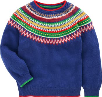 Rings of bright colors and festive patterns frame the neck of a Nordic-inspired sweater that's sized for kids and made with the comfort of cotton and wool. It's easy to wear alone or layered depending on the temperature or the occasion, and it's machine-washable so you can keep it clean right at home.