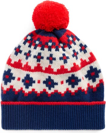 They'll stay warm while enjoying the cold weather in this snug beanie knit in a classic Fair Isle pattern and charmed with a bright pompom.