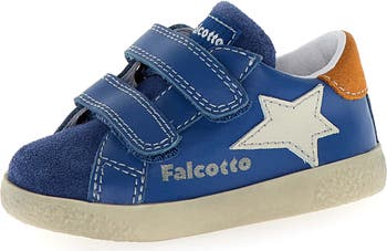 Adjustable straps and a padded collar enhance the comfort of this starry leather sneaker grounded by a sturdy cupsole that's ready for playground adventures.