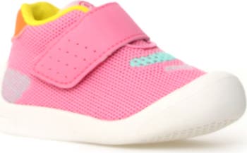 A breathable knit upper and adjustable hook-and-loop strap bring comfortable elements to a play-ready sneaker grounded by a flexible rubber sole.