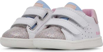 Little ones will be ready for playtime in this glittery sneaker featuring adjustable hook-and-loop straps, a padded collar and a flexible sole.